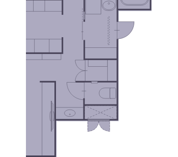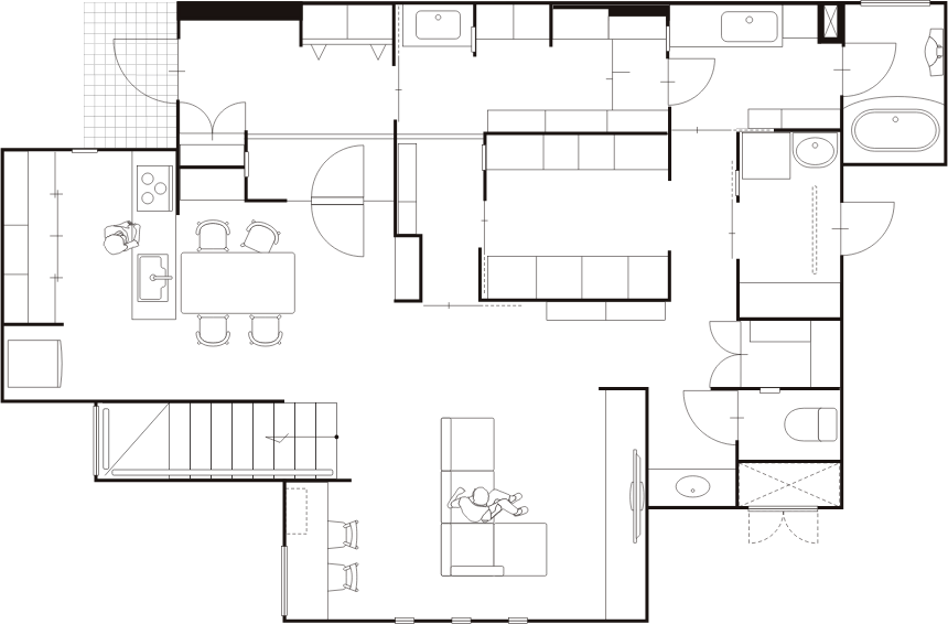 一般的なドアは、部屋ごとにある下がり壁(垂れ壁)が目線を遮ることにより、閉塞感や圧迫感を感じさせますが、フルハイトドア®は天井まで高さがあることで、お部屋の天井がつながり室内のひろがり・明るさを感じさせます。